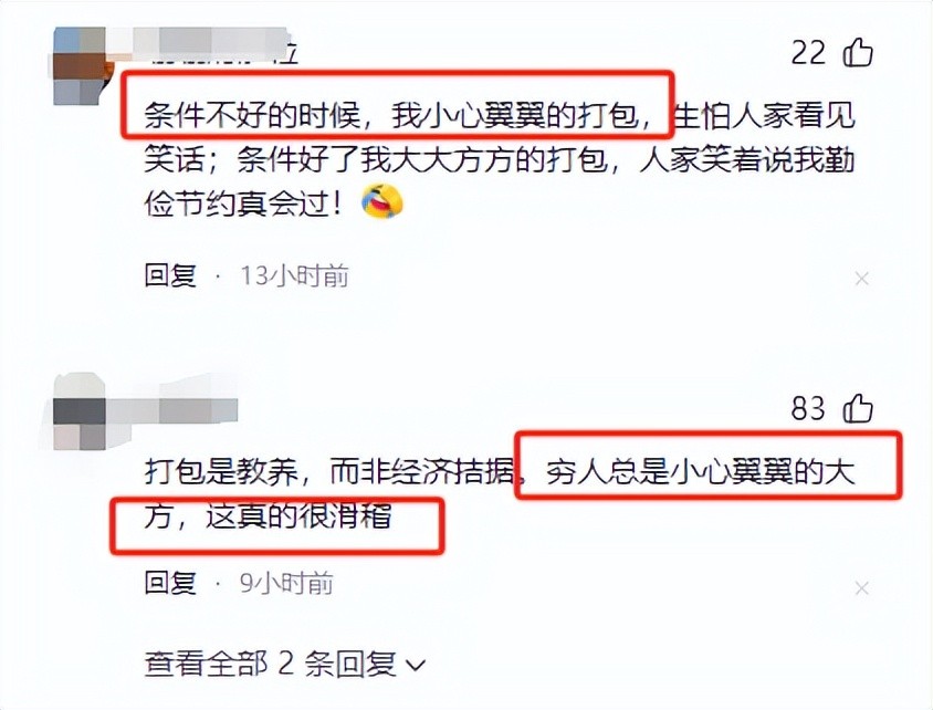 吃不完就打包并没有什么问题,越是有钱的人就越不会在乎别人的眼光。