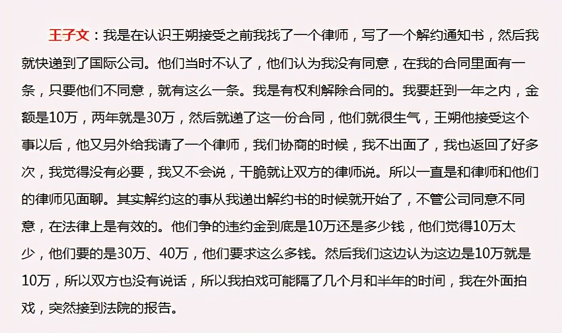 在王朔的一番卖力的表演后,王子文无形中拿到了很多同情分,也为这个看似不可能解除的合同,赢得了转机。