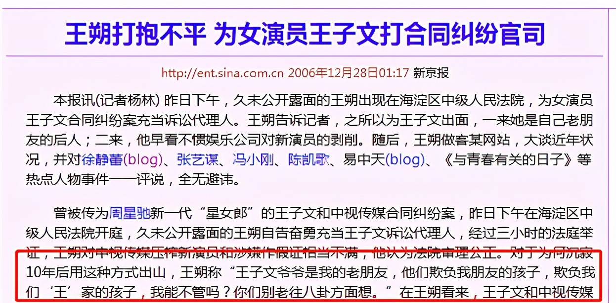 王子文爷爷是我的老朋友,他们欺负我朋友的孩子,欺负我们‘王’家的孩子,我能不管吗?你们别老往八卦方面想。