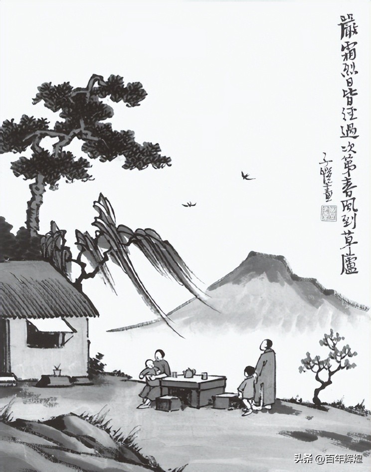 丰子恺漫画《严霜烈日皆经过 次第春风到草庐》
