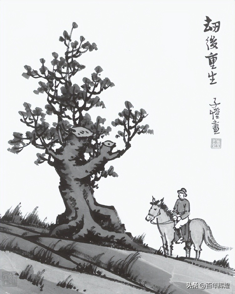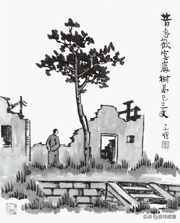 丰子恺漫画《昔年欢宴处 树高已三丈》