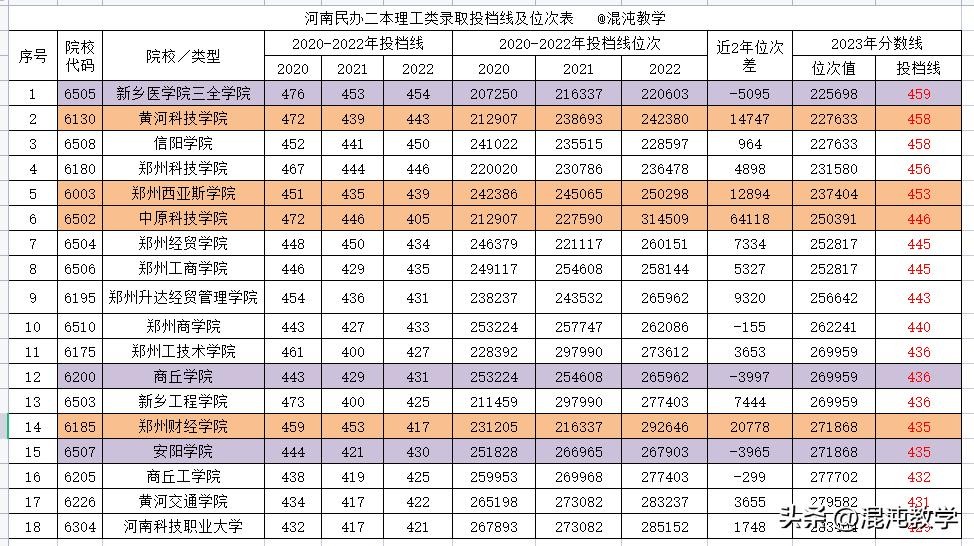 新乡医学院三全学院459排名第一,黄淮科技学院、信阳学院同为458并列第二,郑州科技学院456排名第四,郑州西亚斯学院453排名第五。