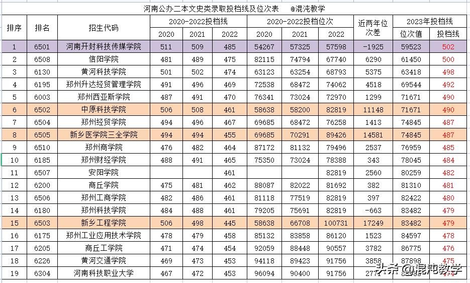 在民办高校中只有河南开封传媒学院和郑州科技学院的位次出现下降,其余高校都呈上升趋势,其中中原科技学院、新乡学院三全学院、新乡工程学院位次都上升达一万位次以上,虽然上升几千至一万多位次,分数也就几分,但是分数上涨证明竞争也更加激烈。