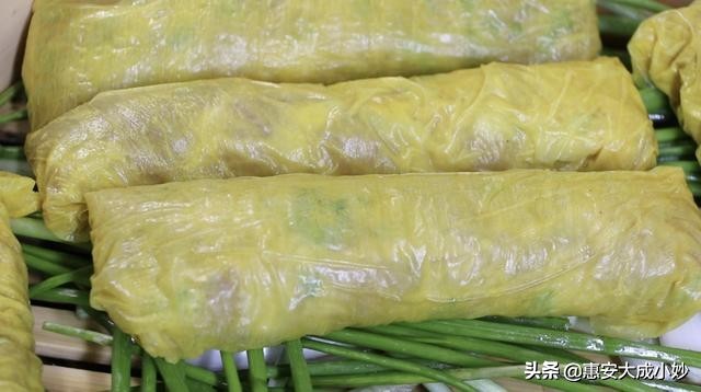 剁碎的精肉、洋葱等食材,包成如春饼的一条条,上锅蒸熟直接食用也可放入油锅炸。新鲜出锅的五香卷,豆皮带着一股淡淡的豆香,裹着饱满丰富的佐料,外酥里嫩,香气诱人,咬下一口,有淡淡的洋葱香,咸淡适宜,令人欲罢不能。