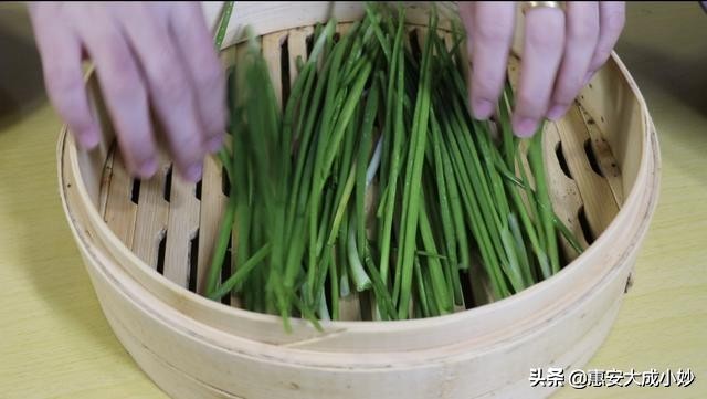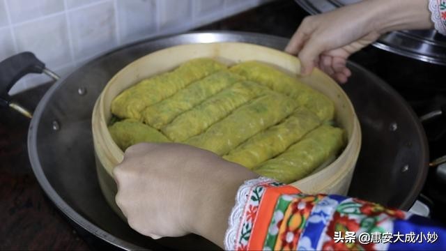 3、准备好的蒸笼,底部铺满葱段(这会让制作出来的五香卷,更加美味);