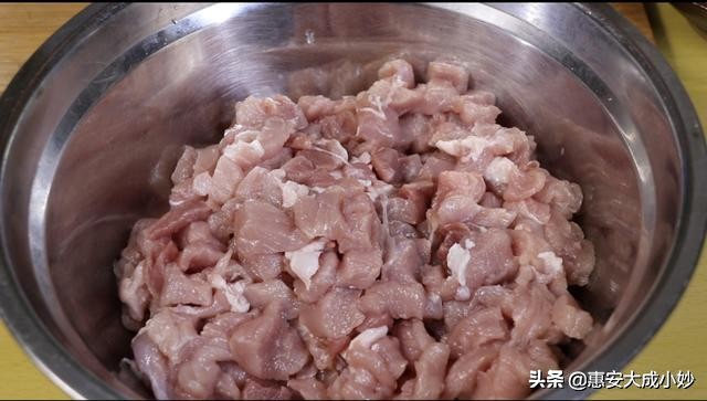 1、猪瘦肉切成小块,加入食盐、味精、砂糖、葱头等,抓匀腌制;