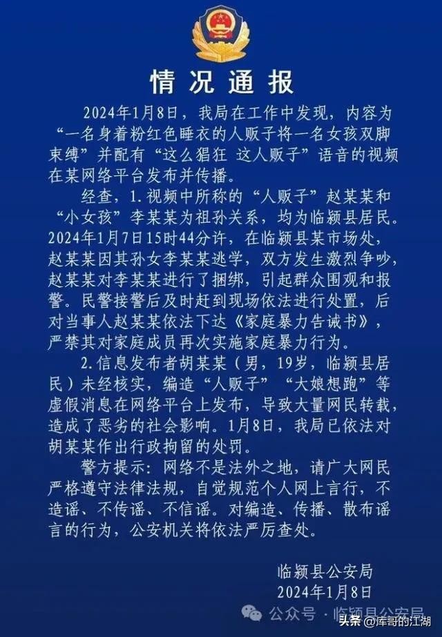 网传人贩子街头将女孩手脚捆绑最新进展,警方:对发布视频者拘留
