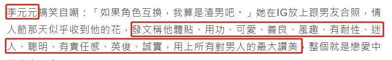但李元元认为男友风趣、有耐性、可爱、英俊……