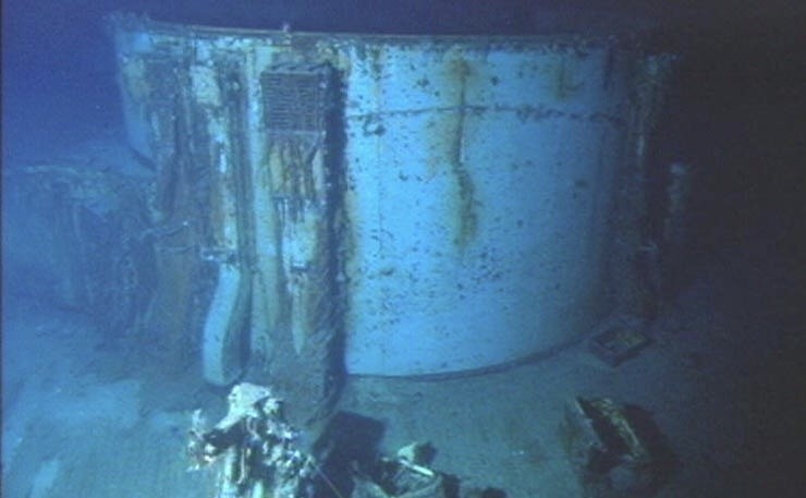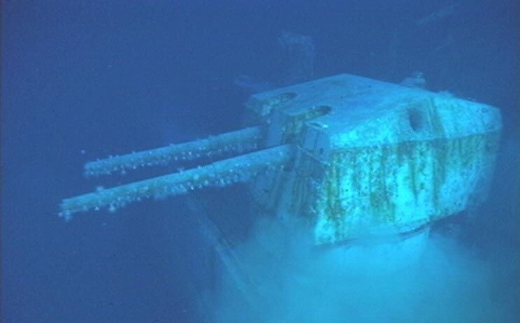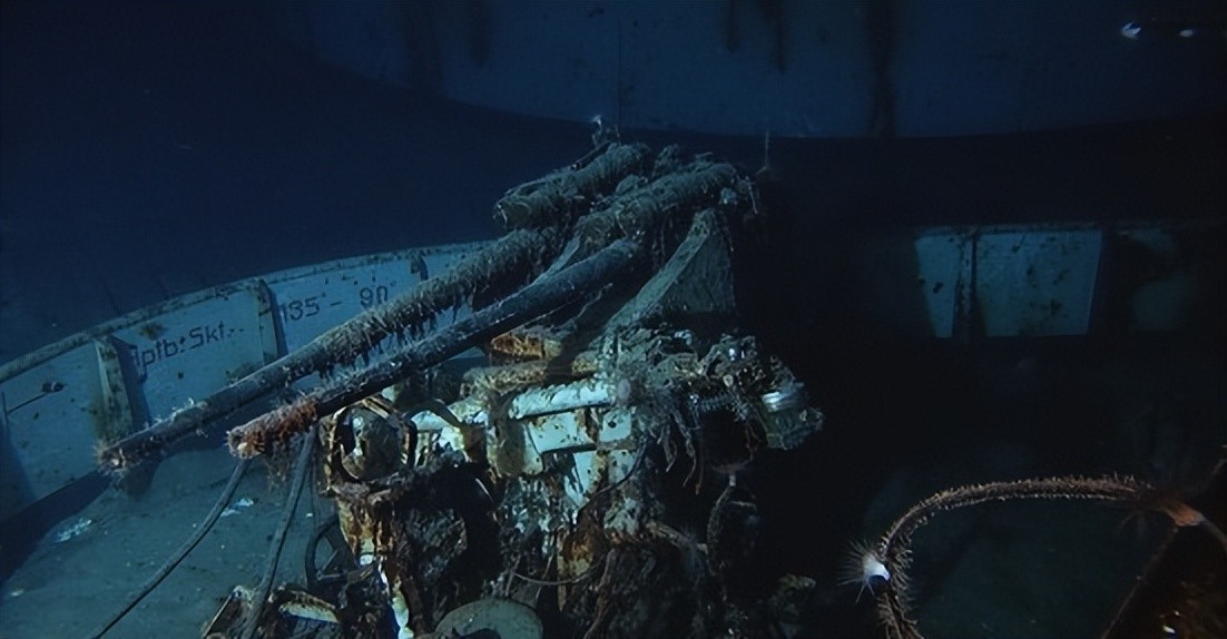 俾斯麦号的炮塔底座,在倾覆沉没时很多炮塔都先散落了,因为当时许多军舰的舰炮炮塔都是依靠重力安装的。