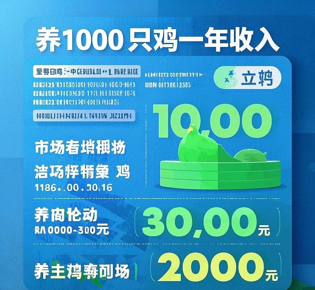 综合来看,养 1000 只鸡一年收入,养肉鸡若一切顺利且市场平稳,利润约在 3000 - 5000 元;养土鸡做好精细管理,利润能达到 3 - 4 万元。但这一路布满荆棘,从品种抉择、饲养管理到疫病防控、市场销售,每个环节都需养殖户用心钻研、精心打理,才能在养鸡致富路上行稳致远,让千羽鸡群真正成为开启财富大门的金钥匙。