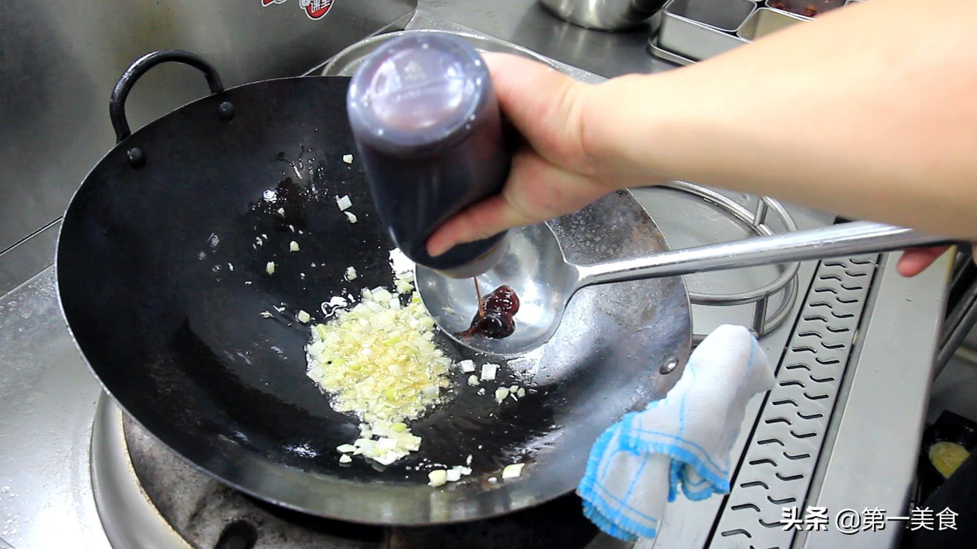 锅内留底油,油热以后放入葱蒜末一起翻炒,翻炒出蒜香味以后,放入蚝油2克,继续翻炒提一下鲜味 。