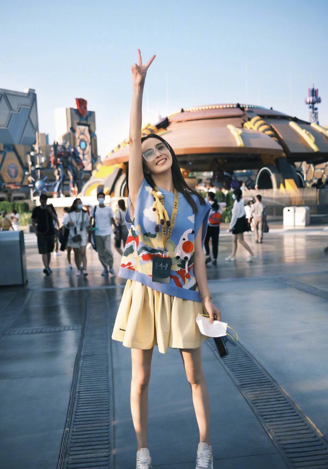 38岁的佟丽娅就好像冻龄了一样,蓝色色的毛衣背心,动物的印花加上各种亮色调,整个看起来非常抢眼,下半身则搭配了一条黄色的百褶裙,颜色搭配的相当夺眼球,佟丽娅的瘦是出了名的,看看她这双筷子腿,那是一点赘肉都没有,搭配帆布鞋,年轻10岁不是梦,直接从38岁变成28岁。
