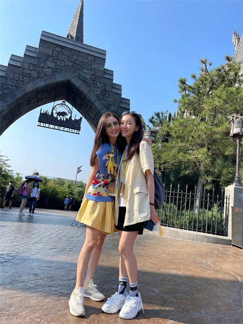 最近好多明星都到北京环球影城打卡,这不佟丽娅、董璇和高露也相约聚一场。要说梦幻般的地方在穿衣打扮上还真要好好打造一番,佟丽娅就非常聪明了,在几个人合影就属她的衣服是最亮眼的。