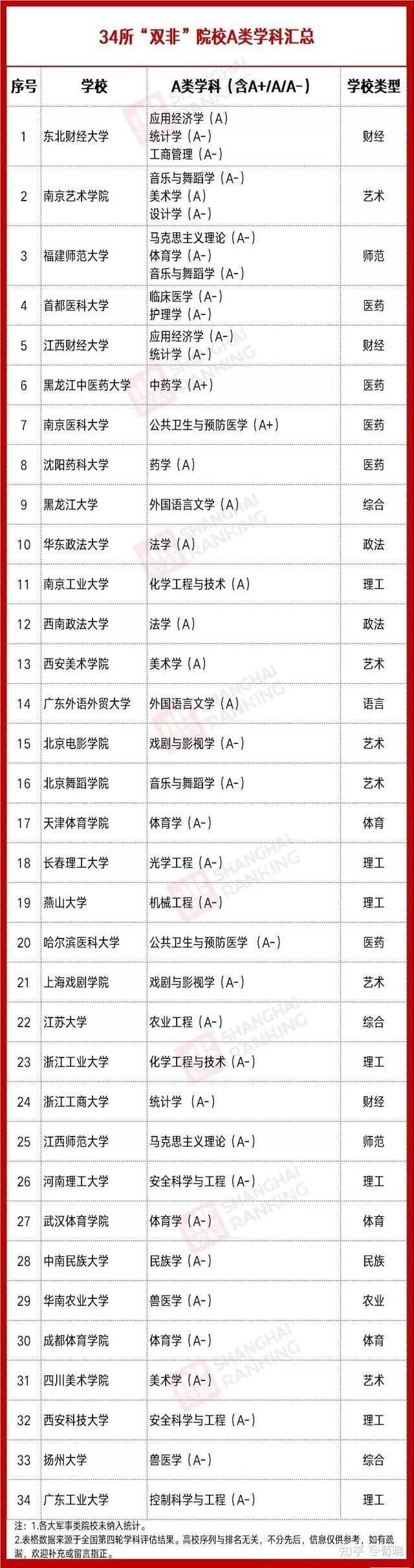 此外,还有34所高校,是有A类学科,但是却并非双一流高校。