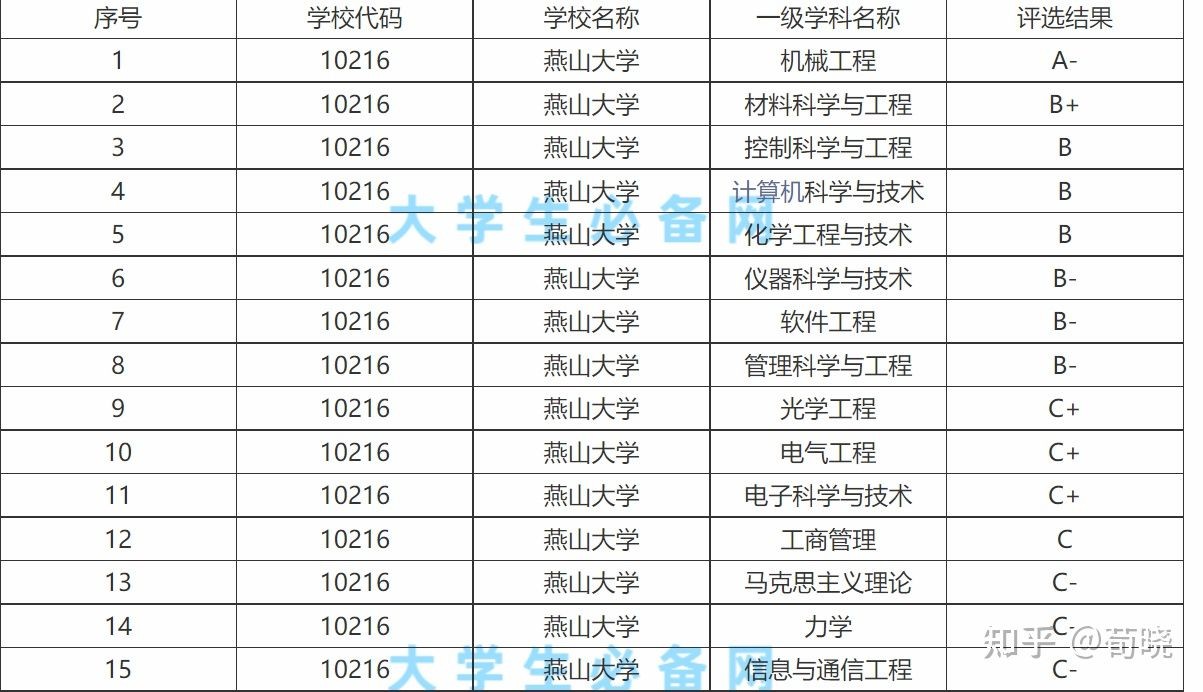 如果去看燕山大学的学科评估结果,那么不难看出来,排名在B类的,均是工程技术类的学科,没有一个是文理经管医法类的学科。