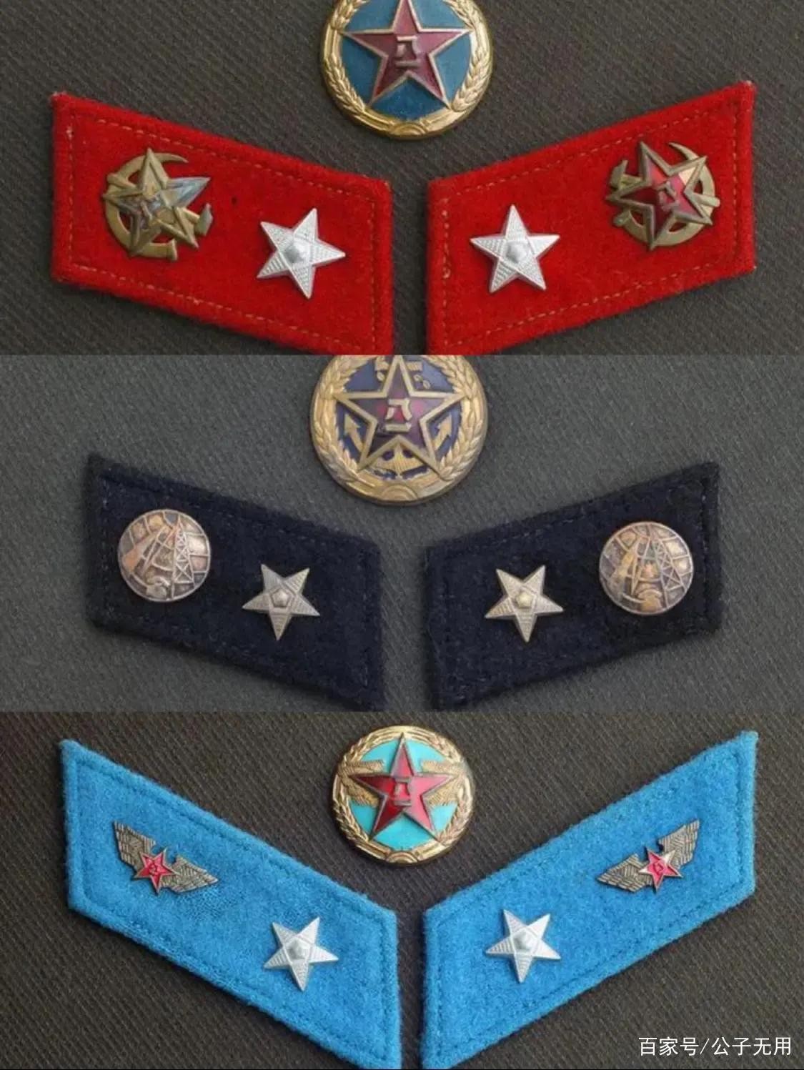 由上到下分别为:陆军列兵军衔、海军列兵军衔、空军列兵军衔。