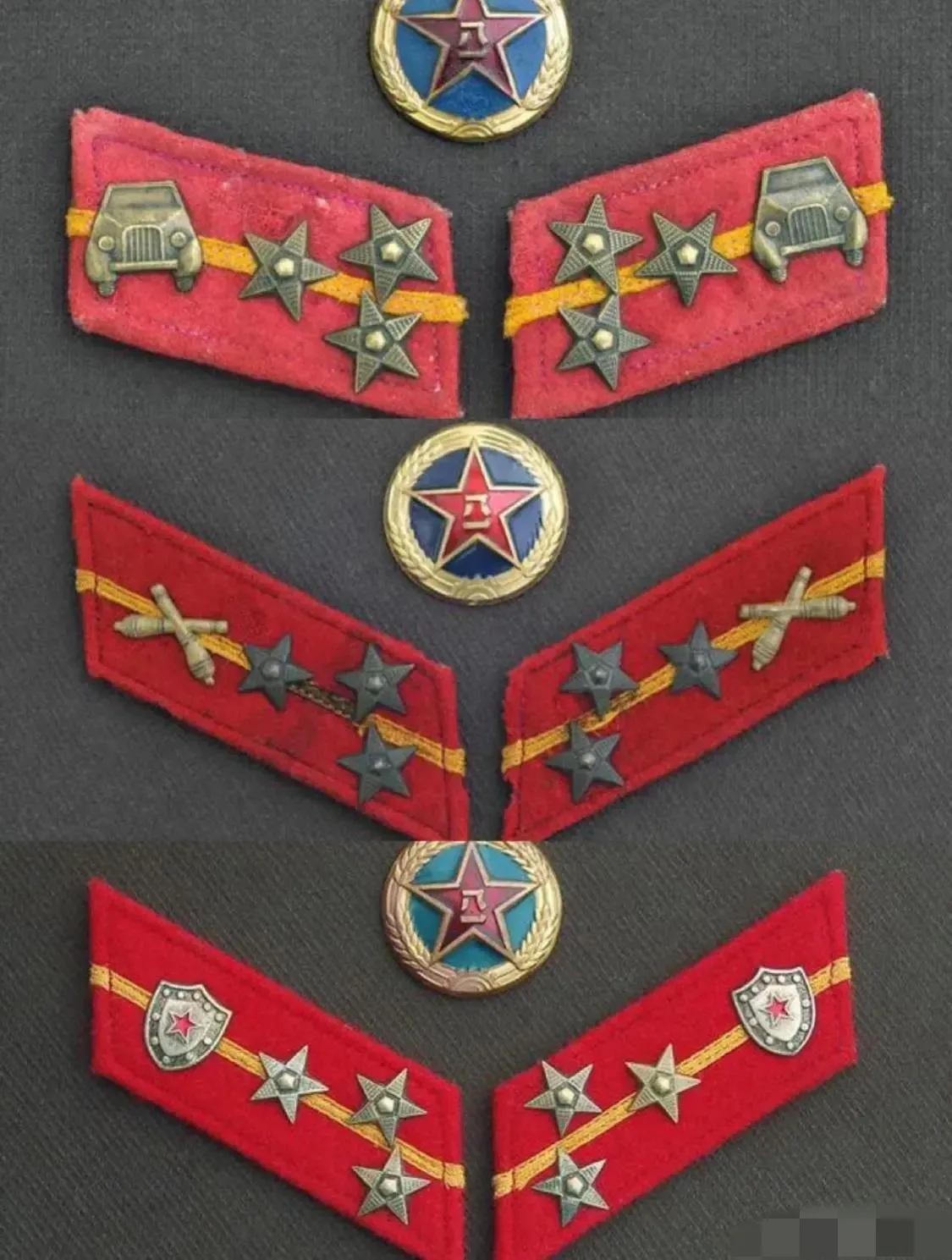 由上到下分别为:汽车兵上士军衔、炮兵上士军衔、公安军上士军衔。