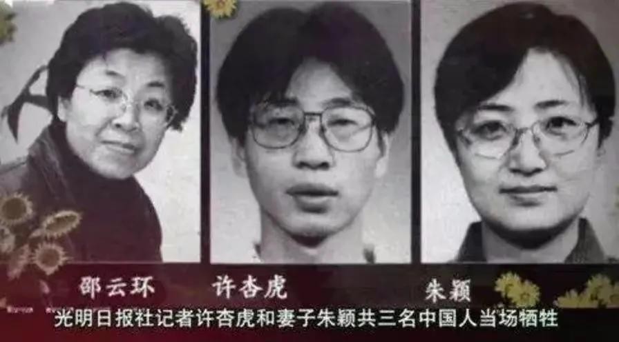 造成来自新华社的邵云环和光明日报的许杏虎、朱颖记者三人当场死亡,血肉模糊 ,20多人受伤,整个大使馆被全部破坏掉!现场惨不忍睹,是实实在在的暴行!