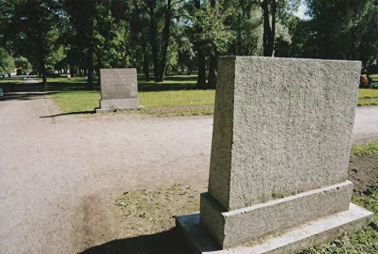 普希金的决斗之地。两块石碑分别标示着决斗双方执枪站立的地方。近处为丹特士,远处为普希金