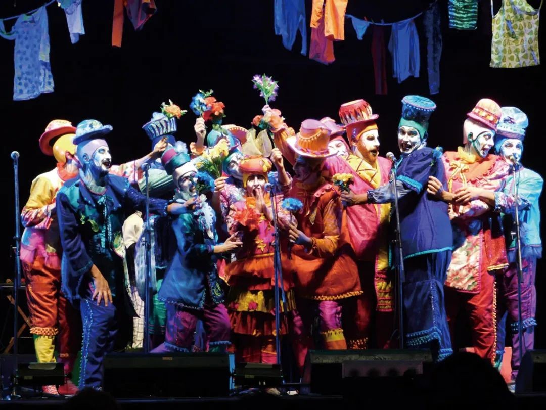 舞团中的俊男美女们,周身点缀着耀眼的亮片和张扬的羽饰。探戈、桑巴、非裔舞蹈轮番上演,凸显多元文化在蒙得维的亚的交融。排在热舞后登场的是 “草医”(Gramillero)——用草药治病的部落巫师,他身边是殖民地女管家“老妈妈”和“扫烟囱男孩”。接着是街头歌舞游行“穆尔加”,每支游行队伍着不同主题的妆容与服饰,影射上年乌拉圭和全球发生的大事。