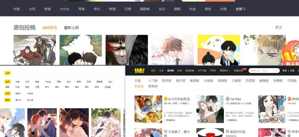 快看漫画的作品部分免费,网站的作品质量十分优秀。平台聚集了许多优秀的创作者。作品种类多。是中国年轻人的国漫IP平台和分享社区。