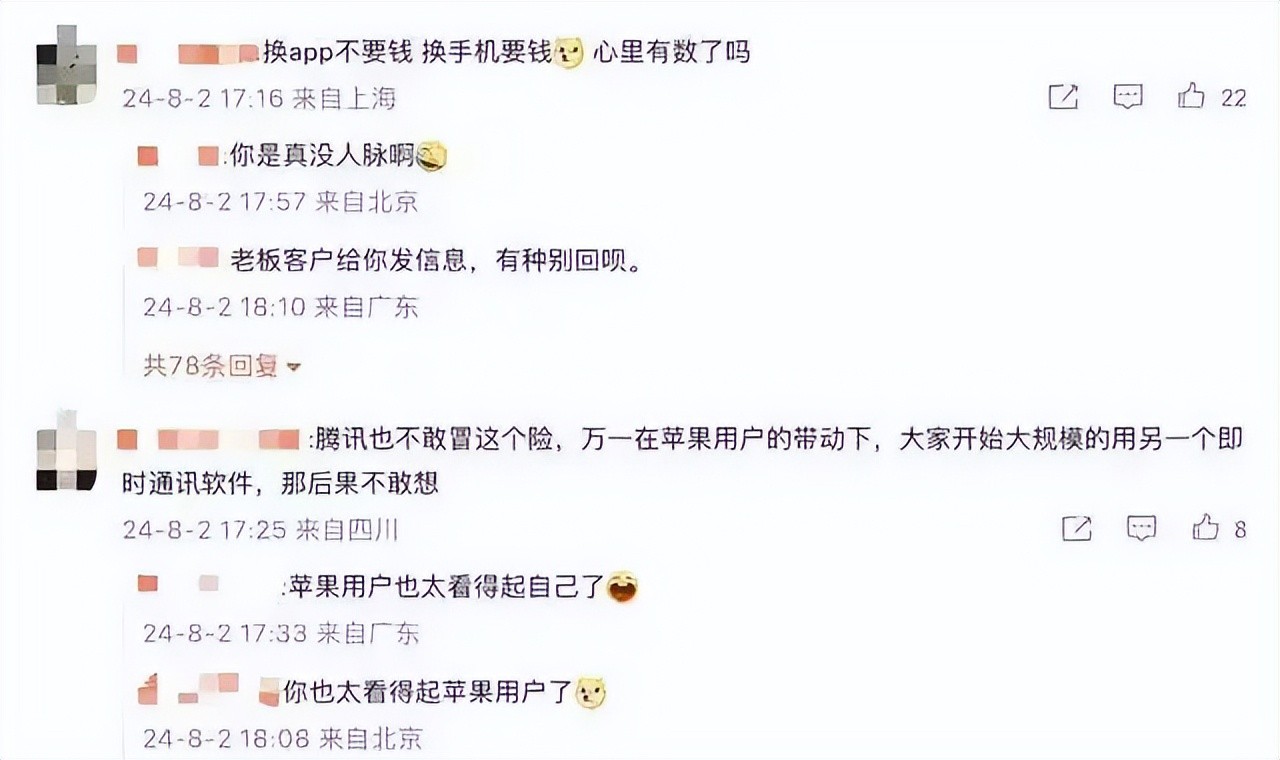 还有用户表示,他们可能会考虑放弃苹果手机,转而使用安卓系统的手机,如华为、小米等国产品牌,因为失去微信后,iPhone的便利性将大打折扣。