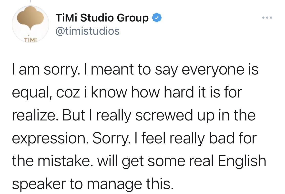 天美工作室也对此发文进行了深刻的道歉和反省,并表示将重新寻找英文母语者来管理账号。