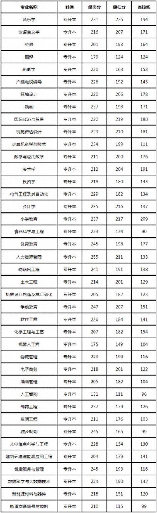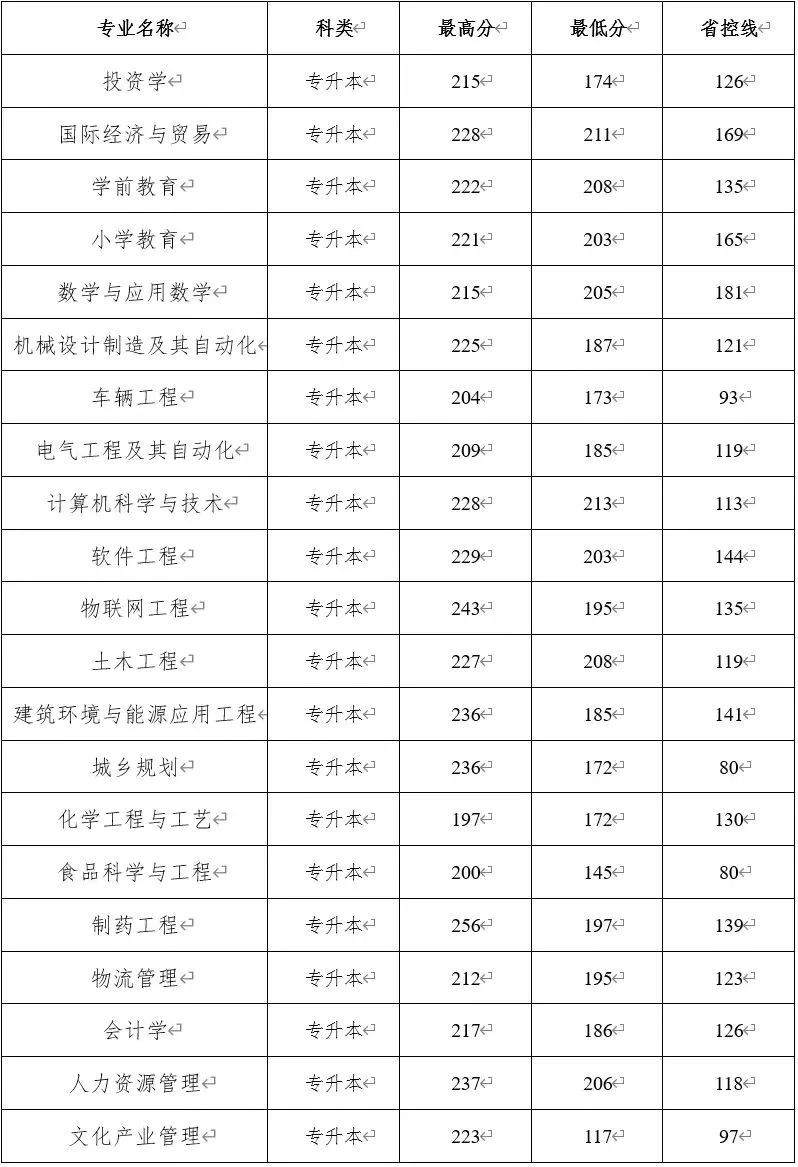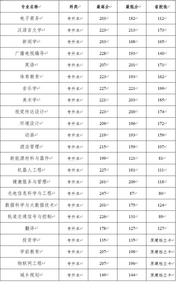 2021专升本录取分数线