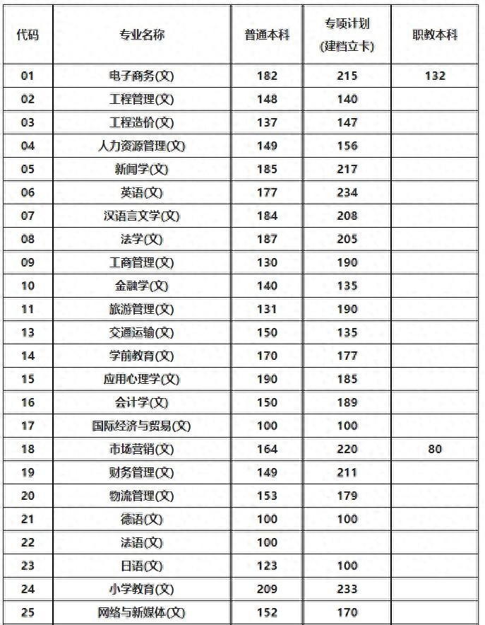 因专项计划(原建档立卡贫困家庭高职毕业生招生计划)主要安排在公办本科和独立学院,部分专业分数线高于普通本科分数线。