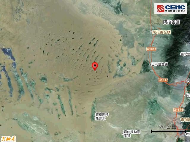 内蒙古阿拉善盟阿拉善左旗发生3.0级地震