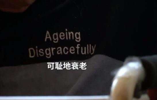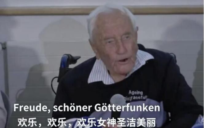 说完这话,古德尔自己还唱了两句。古德尔唱完后,现场响起了雷鸣般的掌声。此时有记者注意到,古德尔穿的上衣上面写着“可耻的衰老”,这令许多人都对这位老人产生了理解。