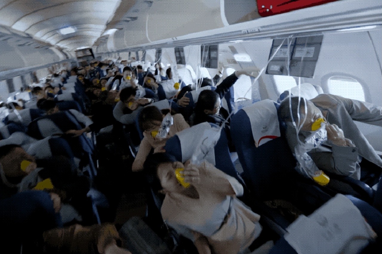 乘客们在慌乱中纷纷戴上了氧气罩,被吸出去的副驾驶完全暴露在高寒缺氧的环境下,