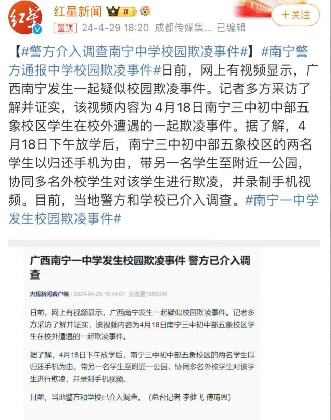 最近,一段南宁某中学发生的霸凌视频在网络上疯传,引发了广泛关注。视频显示多名女生当众殴打一名女生,甚至脱掉她的衣服。这起事件曝光后,监督力量强大,事件很快就被挖掘出更多内幕。