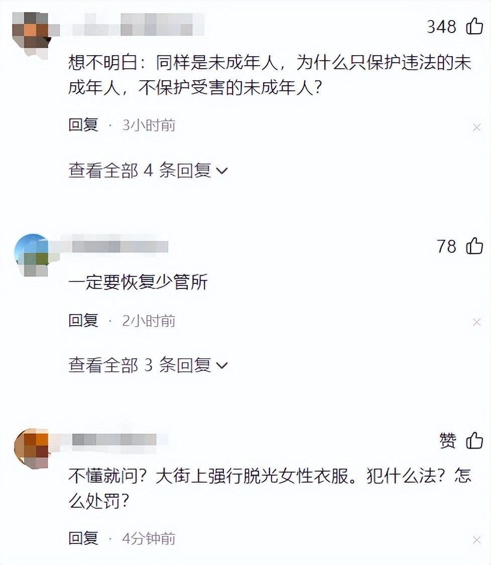 所以,这起事件让人觉得愤怒,但也折射出一个问题——现行法律监管力度不够,应该检讨如何改进,加大对未成年人违法行为的惩治力度。