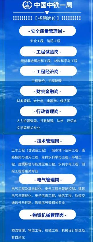 而且中铁一局虽然是个工程类企业,但是此次校招开始招录的职位和专业要求却是文理兼具的。