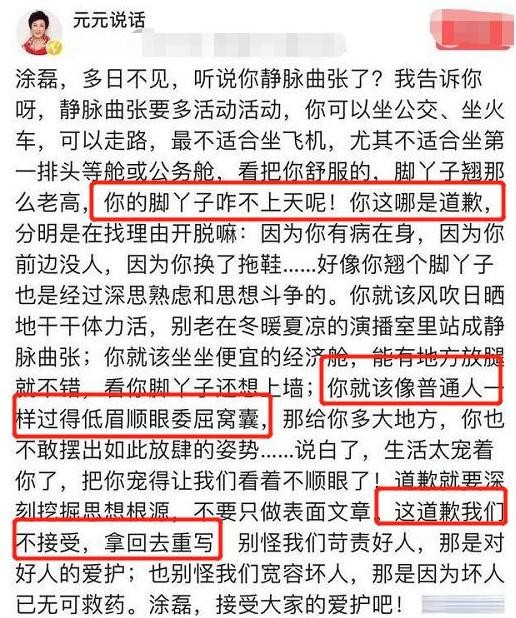 或许这就是元元发表完痛斥涂磊那番话后,反而被网友“炮轰”的原因:她没有尊重涂磊,也没有尊重普通人。