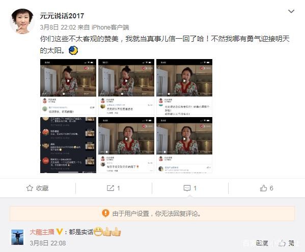 夸漂亮,夸随和,夸声音好听,微博晒出好评,却依然不能评论。