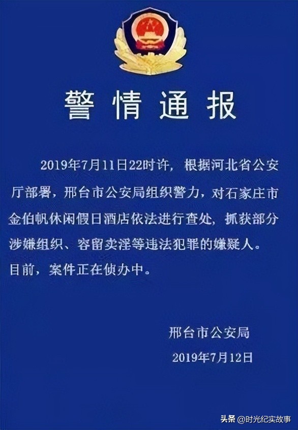 法网恢恢,疏而不漏。在2019年7月11日,河北邢台市警方在充分掌握了犯罪团伙的证据后,迅速行动起来,封查了金伯帆休闲假日酒店,并抓捕了该团伙的成员。