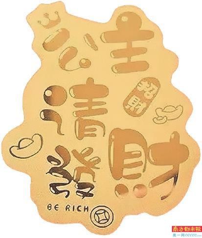 刻有“公主请发财”的小克重黄金贴片。