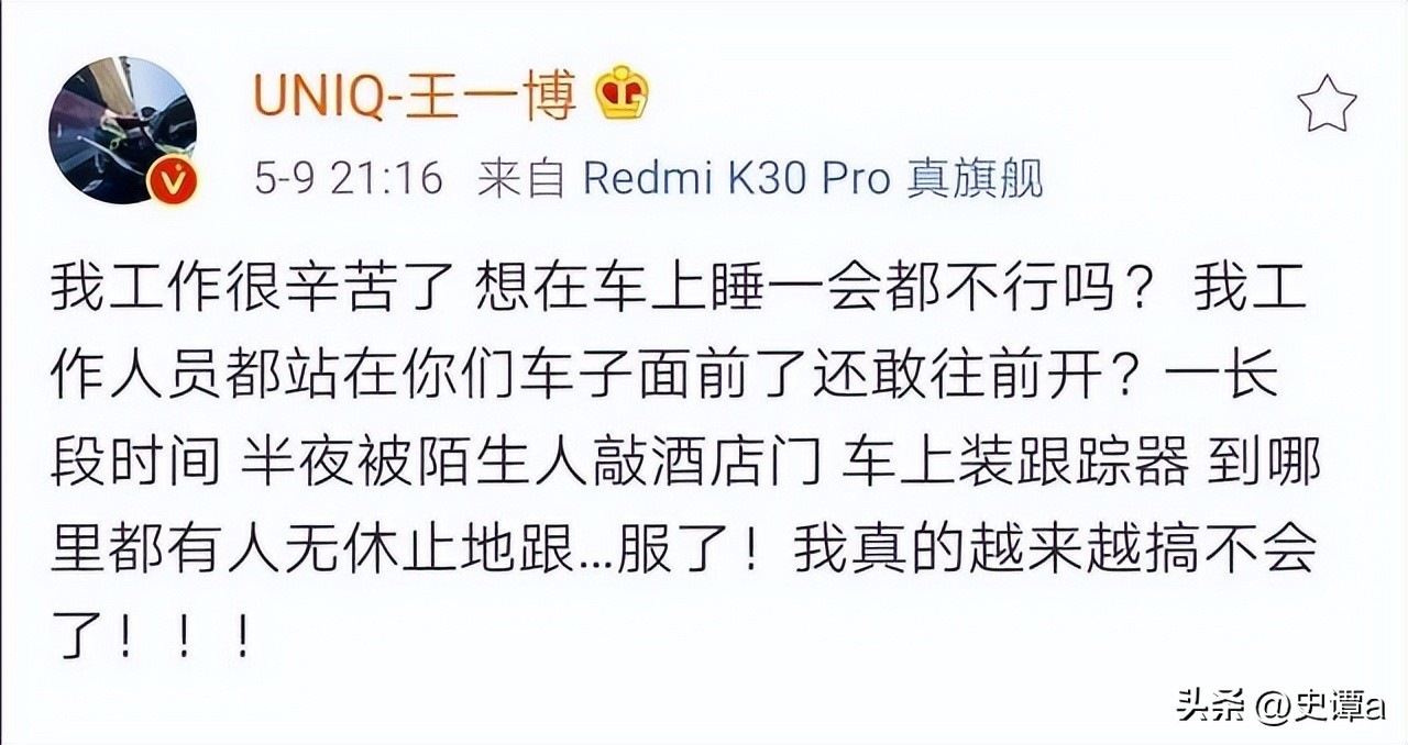 事后王一博发文怒怼私生饭然而于事无补,这些粉丝仍然紧密的跟踪着他,不仅在车子上安装追踪器,甚至在他随身携带的必用物上安装窃听器,活脱脱把追星演绎成了谍战。