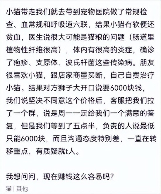 除了围绕养宠用品的价格、质量产生的争议,猫咪本身的健康问题也是出现纠纷的重灾区。