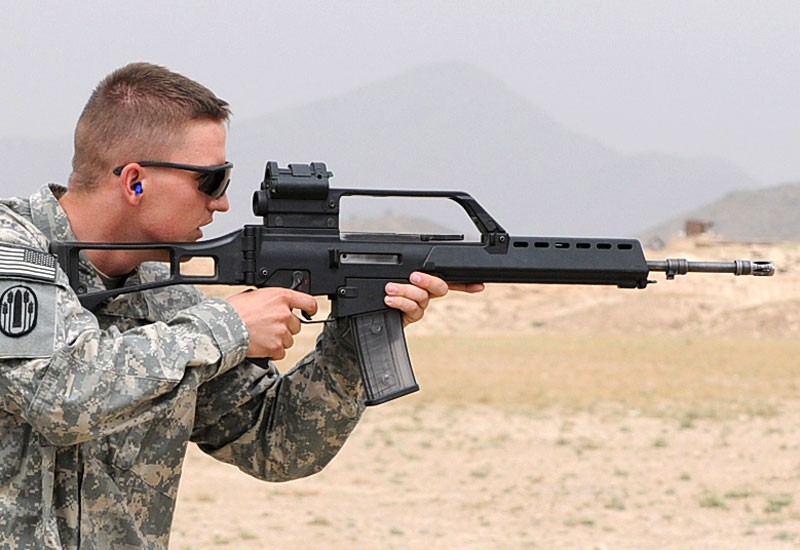 G36步兵步枪自1995年以来一直是德国武装部队的制式武器,该武器的出口取得了成功。它已被进口到全球40多个国家。该突击步枪配有半透明30发弹匣供弹。为了快速装弹,可以将两个或三个弹匣挂在一起。此外,该武器还可使用可容纳100发子弹的双弹鼓。经过调整后,这支步枪可以使用任何普通的5.56×45毫米弹匣。