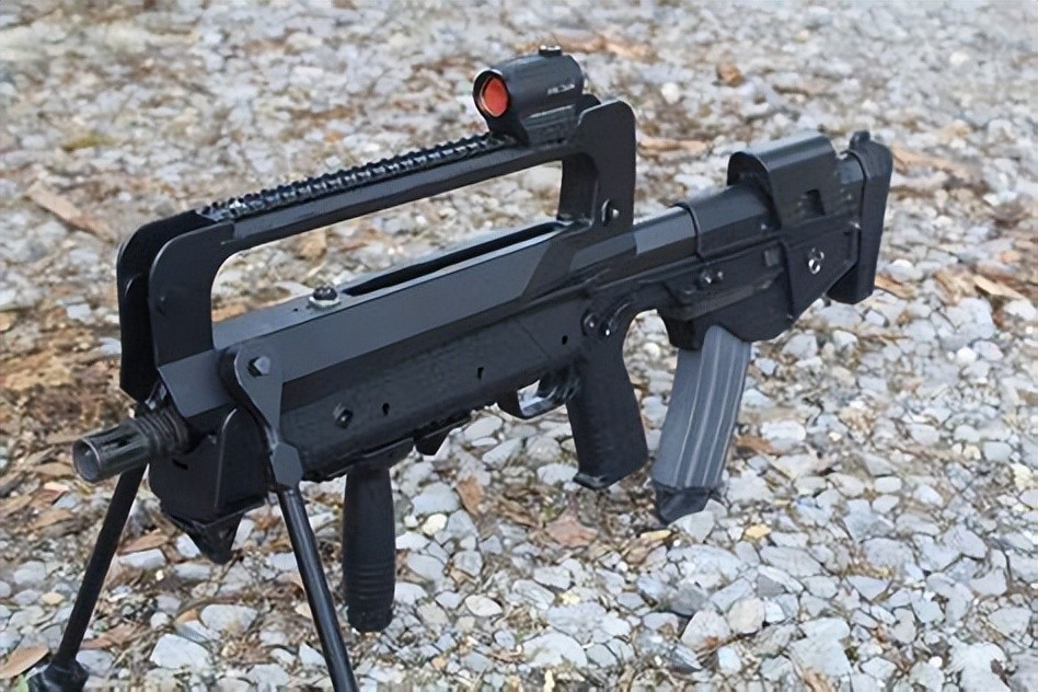 生产于圣艾蒂安武器工厂,一种采用无托设计的突击步枪。法玛斯以其每分钟约900-1100发的高射速而闻名。这是一款无托结构突击步枪,供弹位置位于扳机后面。机匣外壳由特殊钢合金制成,步枪家具由玻璃纤维制成。使用通用的组件导轨,可以安装各种瞄准器,包括红点瞄准器和夜视装置,内置两脚架是某些版本的另一个功能。