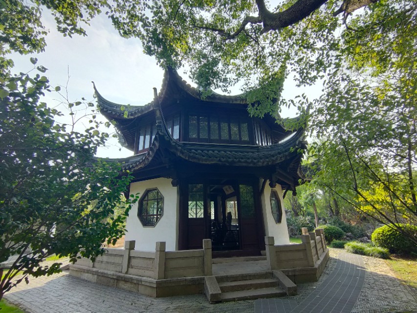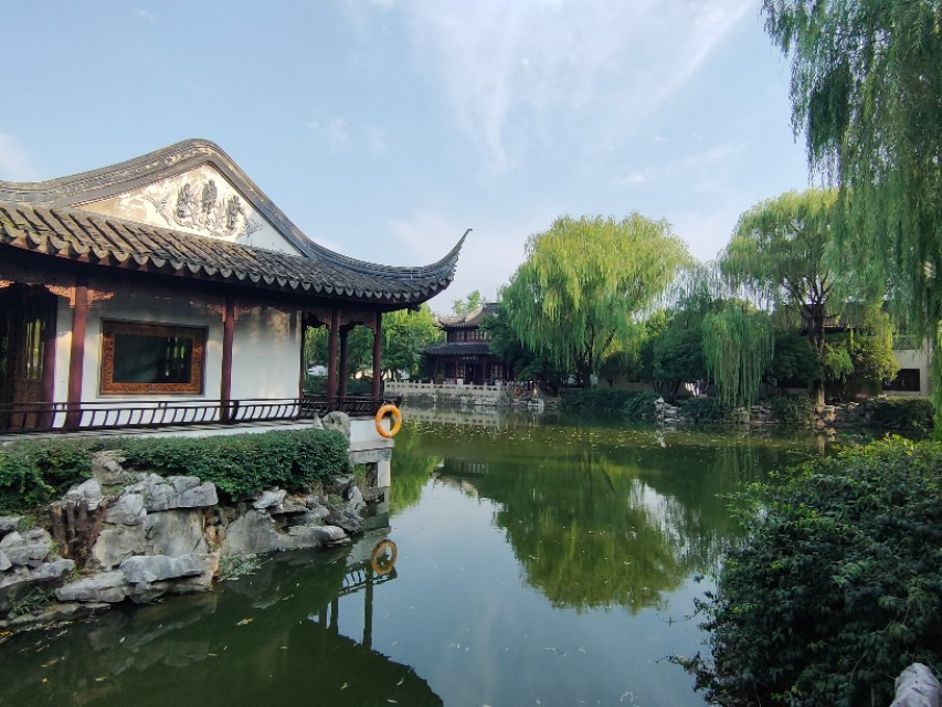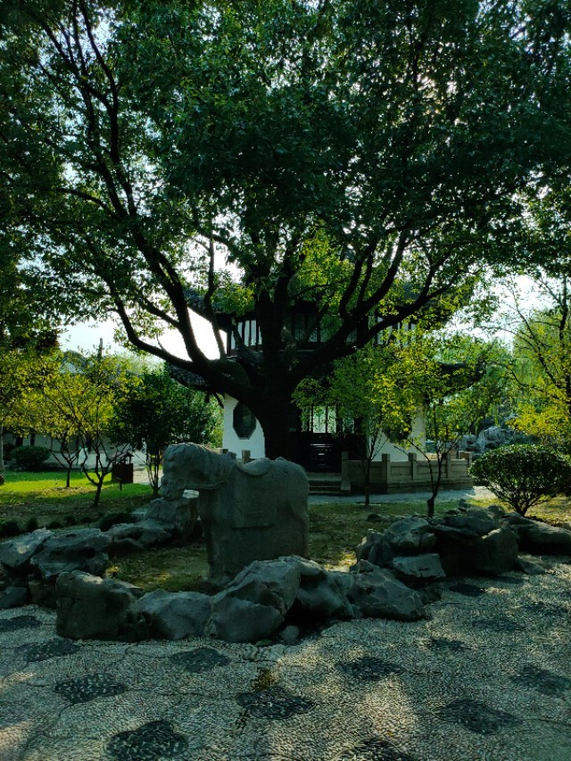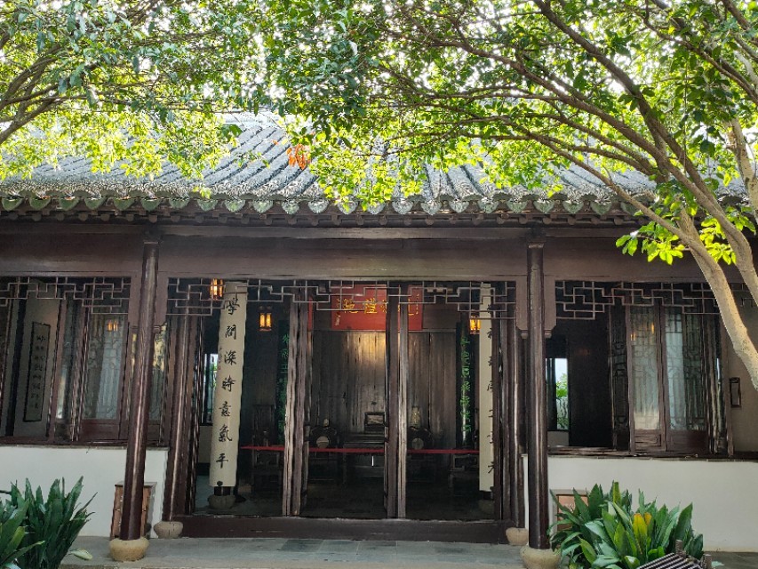 在顾炎武的故居里的花园,一般叫顾园,景色怡人,曲水清波,绿荫葱葱,亭台错落有致,里面有致用阁,思宜园,二石斋秋山亭,三徐居,慈母阁,四柿亭和碑亭等等,通过雕塑和字画来宣传顾炎武,到千灯来旅游的人,这里绝对是我们难忘的景点。