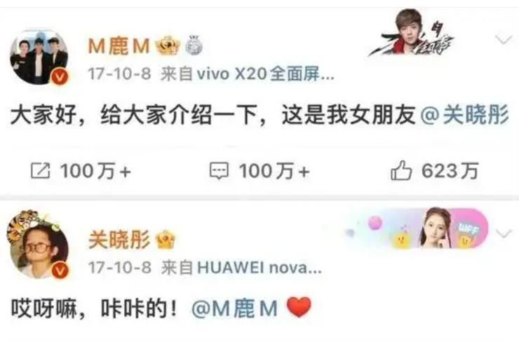 鹿晗关晓彤冲上热搜,再惹分手热议,8年前官宣微博却依然可见