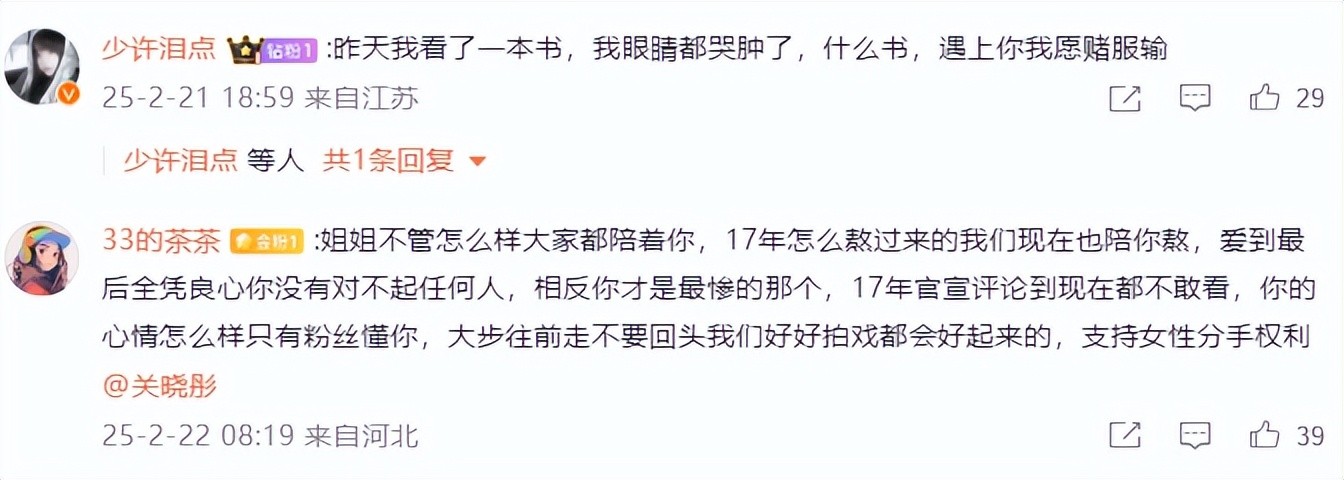 虽说没有确定事情的真假,可在该消息传出后,便有相当一部分关晓彤粉丝,在关晓彤动态底下安慰起了疑似分手的她。