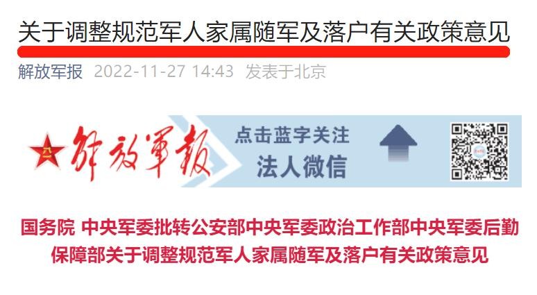 重新调整规范军人家属随军及落户有关政策,都属于势在必行的存在!