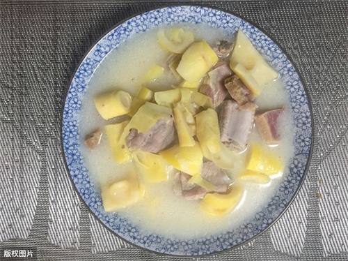 主要是笋和鲜、咸五花肉片一起煮的汤。 “腌”,就是指腌制过的咸肉;“鲜”,就是新鲜的肉类(鸡、蹄髈、小排骨等);“笃”,就是用小火焖的意思。