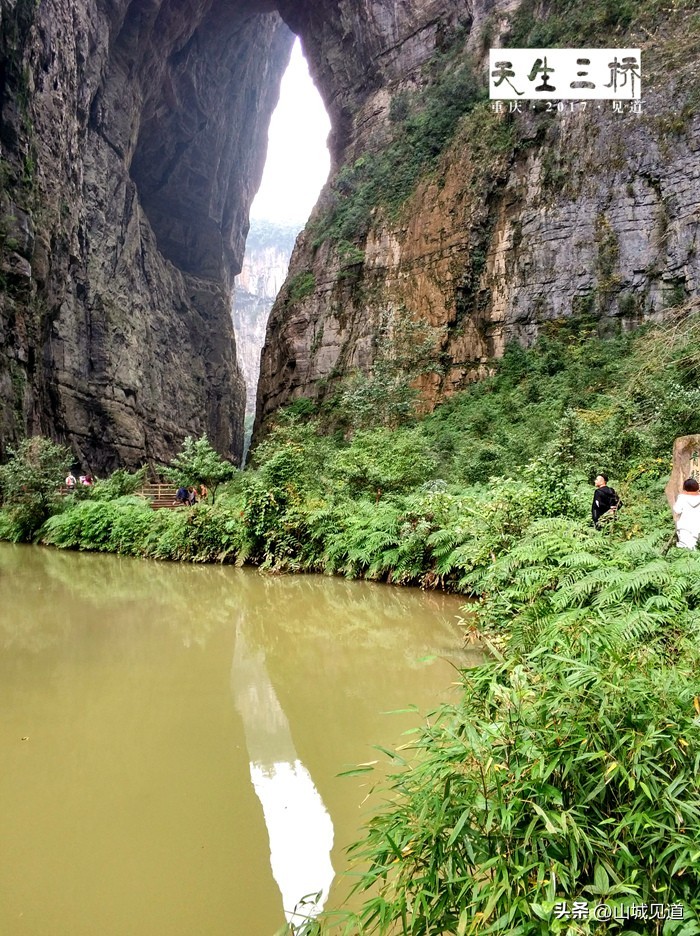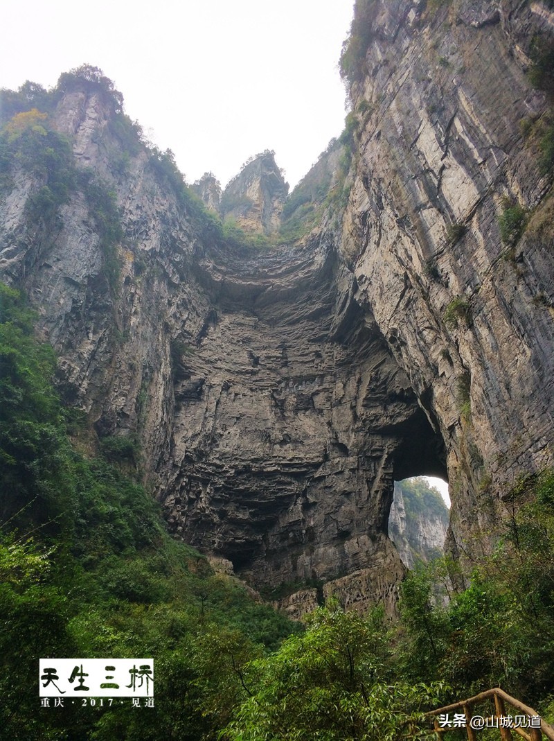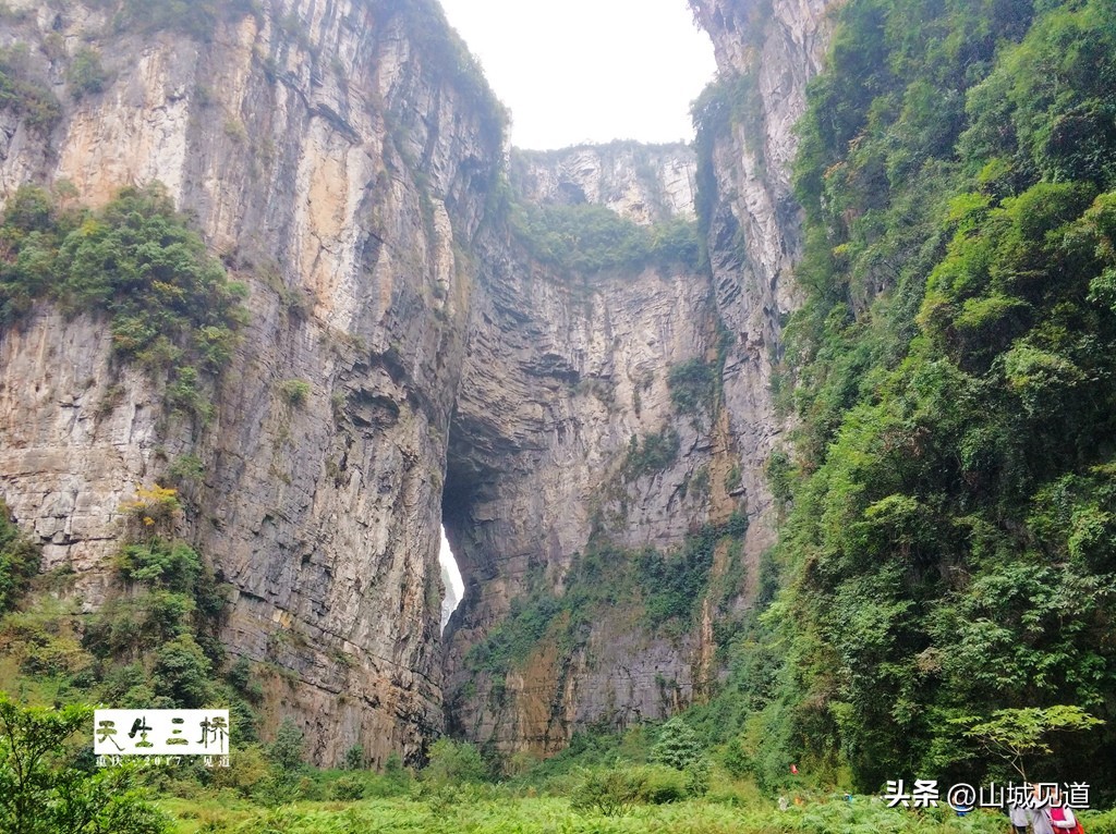 走出洞子回头仰望,就可以看出天龙桥确实像桥了,桥身之下是巨大的“桥洞”。天龙桥是是天生三桥中跨度最大的一座桥。