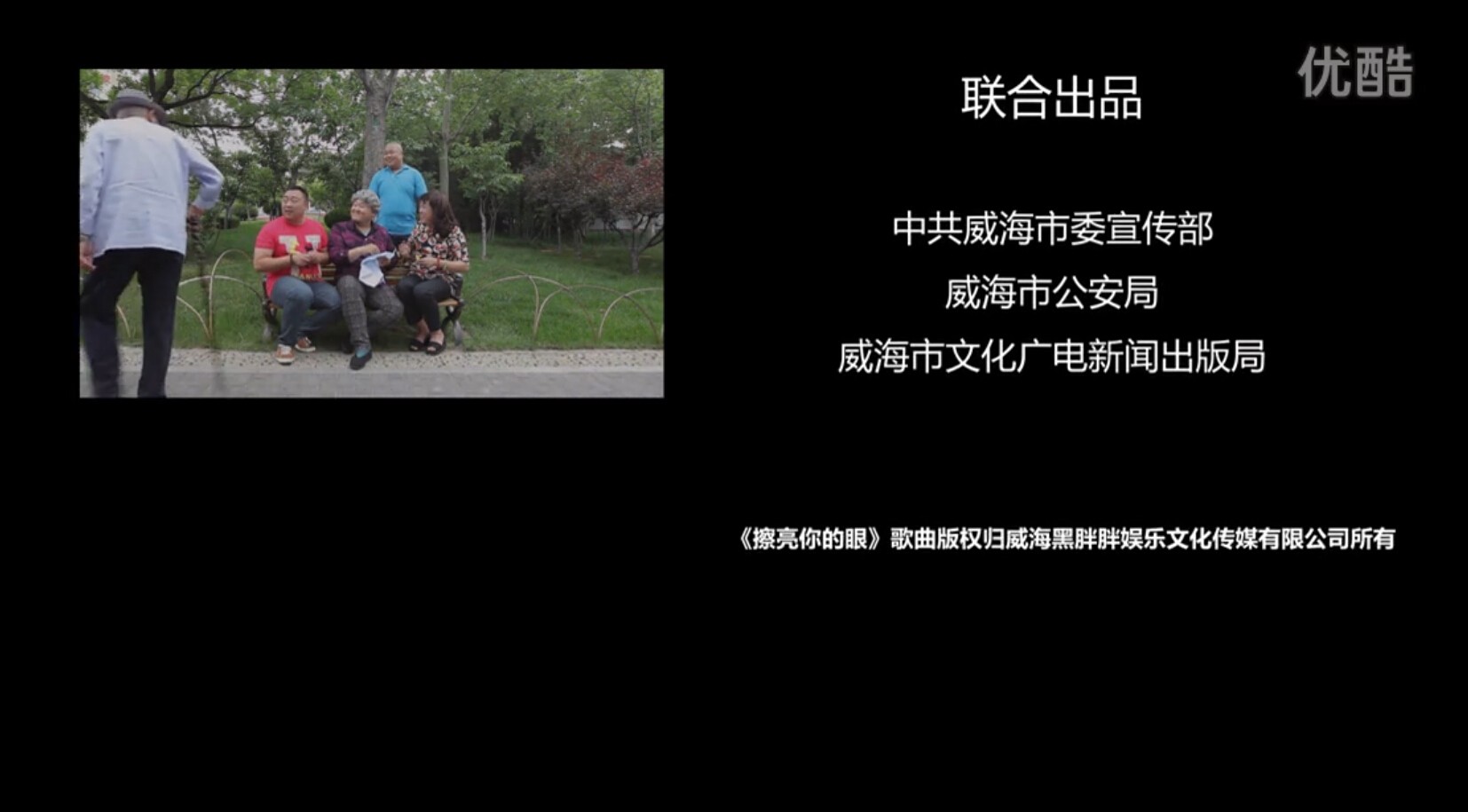 《擦亮你的眼》是由中共威海市委宣传部、威海市公安局、威海市文化广电新闻出版局联合出品,联合包括“黑胖胖”组合在内的众多威海本土艺人,耗时半年之多,精心打造的方言说唱MV,于2015年6月29日正式推出。